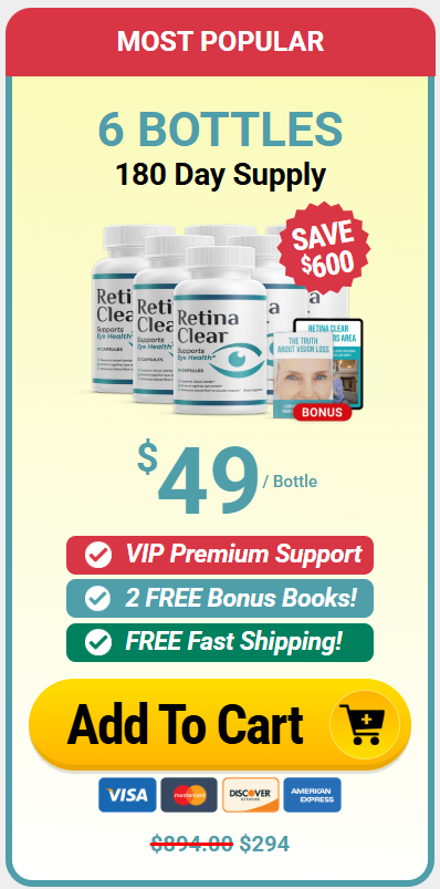 Place your Order with $600 OFF (6 Bottles) on the Official RetinaClear™ Website and Free USA Shipping + Free Bonuses + 60-Day Guarantee!